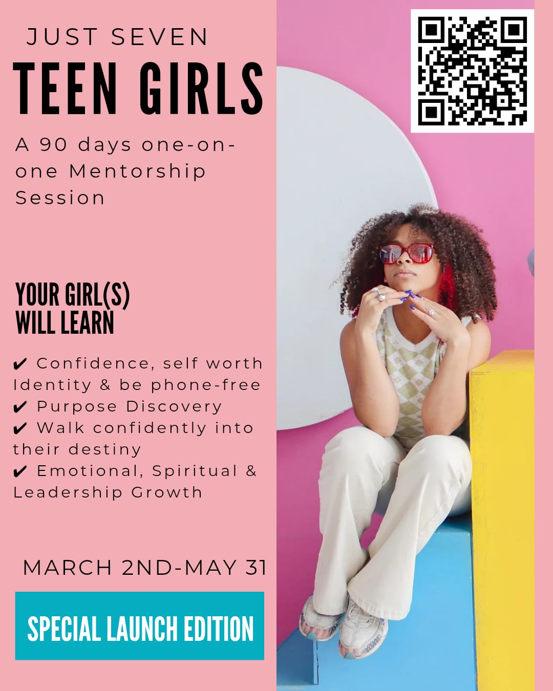 In a world drowning in comparison, validation-seeking, and digital pressure, this 90-day private mentorship experience is designed to help your daughter: